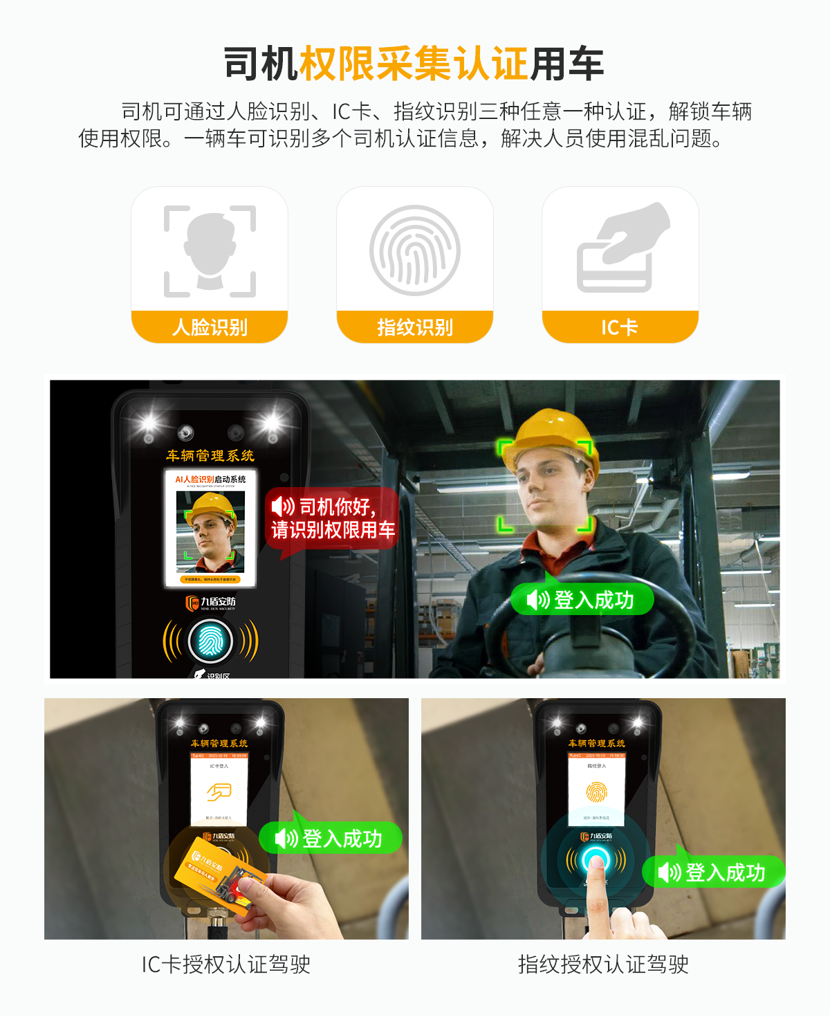 理人員和司機人員,具有 人臉識別、IC 卡、指紋識別授權用車,不僅可以進一步加強車輛的管理,同時可以通過平臺監控車輛的相關信息,記錄司機的違規駕駛行為,