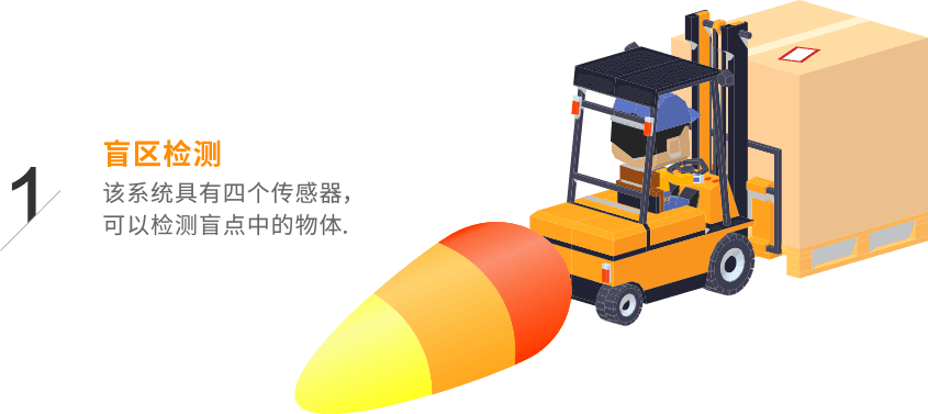 安(an)裝條形燈和箭頭燈在叉車三面形成(cheng)保(bao)護區域,司(si)機(ji)行人(ren)通(tong)過光線判斷安(an)全(quan)距離(li)防撞碰撞!