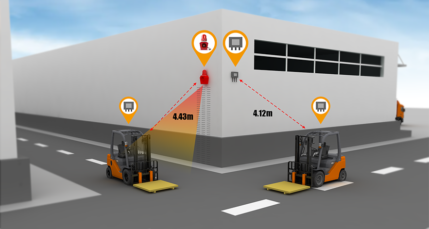 通過微(wei)波聲光(guang)報(bao)警器感應物體移動,或者UWB定位(wei)測距,有叉車(che)經過聲光(guang)報(bao)警提醒注(zhu)意安全!