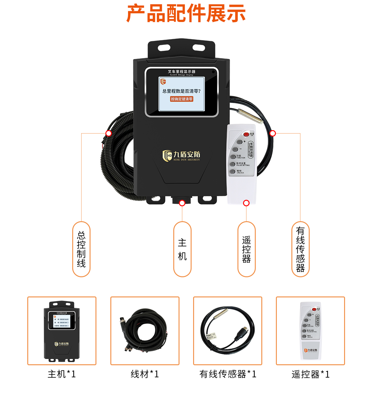 主機、有線傳感器、線材、遙控器