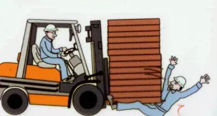 司機正在駕駛叉車運輸,但是貨物堆太高,導致看不見前方的視線,加上行人也沒有察覺到叉車在附近,沒有及時的避讓查查,導致司機駕駛叉車將行人推到了,將人推到了也還沒察覺到叉車前方已經將行人推倒。