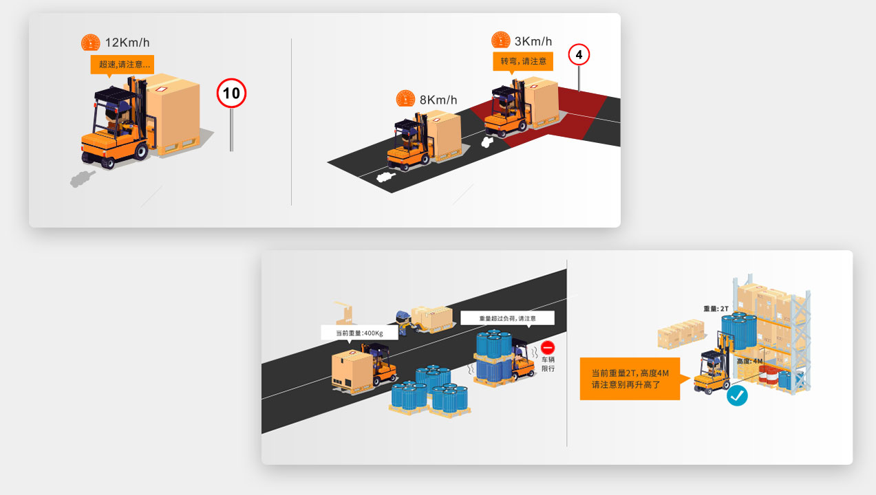 司機駕(jia)駛(shi)叉車,經常會超速行駛(shi),導致轉彎(wan)或者(zhe)突發(fa)狀況(kuang)下剎車來不及撞到人,撞到貨物(wu)